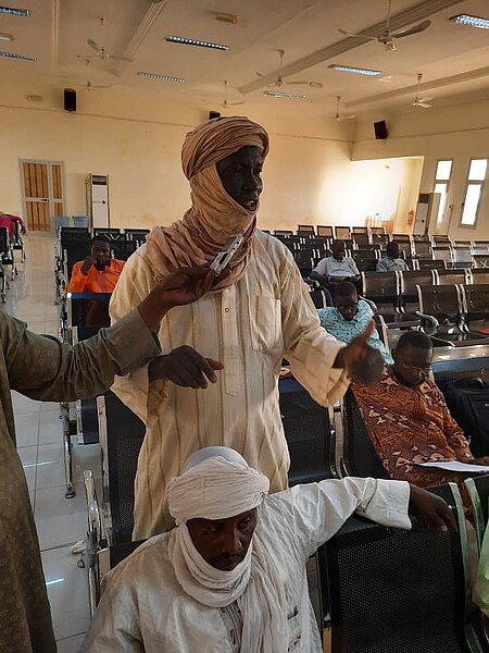 Etwa 55 Teilnehmer*innen, darunter 10 % Frauen, nahmen auf ausdrückliche Einladung des Gouverneurs der Region an dem Workshop teil. Darunter waren nationale (Tasagth, AMSS, ENDA Mali,...) und internationale Organisationen (UNICEF, IOM, UNDP, OCHA, UNFPA, UNHCR, Save The Children, VHH, CARE, AEN ... ), die technischen Dienste (AE, CAPs DRFPE, DRFEF, DRDSES, ...), die Partnergemeinden des Projekts SSF Mali Centre/Nord (Gounzourèye und Soni Ali Ber) und die Dachorganisationen für Jugendliche (CRJ) und Frauen (CAFO).