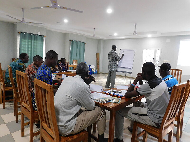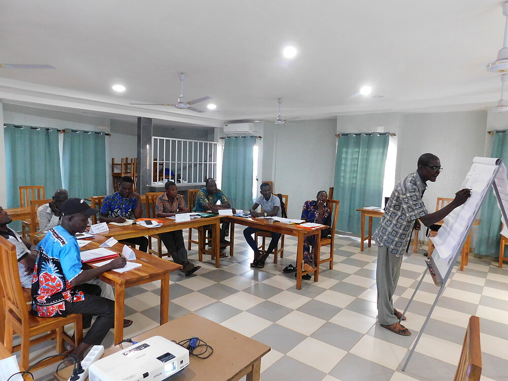 La dynamisation du sous-secteur de l’alphabétisation et de l’éducation non formelle au Togo requiert la disponibilité du matériel didactique de qualité et de ressources humaines qualifiées. En vue de doter le sous-secteur de l’AENF au Togo de nouveaux matériels didactiques, DVV International a recruté en 2021, un consultant national pour élaborer un module de comptabilité simplifiée en français et adapté à toutes les différentes catégories d’apprenants. Après une première présentation du module lors d’un atelier tenu le 03 mars 2022 qui a réuni les cadres de la Direction Générale de l’Alphabétisation et de l’Education Non Formelle (DGAENF) et DVV International, il a été jugé nécessaire de le tester dans les CEC pilotes promus par les communes partenaires de DVV International afin d'apprécier sa pertinence et sa qualité pour son amélioration avant de procéder à sa validation. C’est dans ce cadre que huit alphabétiseurs en charge des centres pilotes promus dans les cinq communes partenaires de DVV International au Togo ont été conviés à un atelier de formation de cinq jours qui a démarré ce 18 juillet 2022 à Sotouboua dans la région Centrale sur ce nouveau module. La valeur ajoutée de ce nouveau module est qu’il est structuré en deux grandes parties et sera utilisé à partir de l’alphabétisation de base.